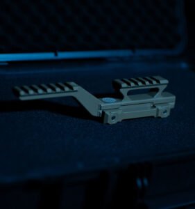 • Optimización de la ergonomía y distribución del peso: El diseño de la montura HYDRA permite elevar accesorios como luces o láseres, acercándolos a la óptica de punto rojo. Esto elimina la obstrucción visual y centraliza el peso del equipo sobre el pozo del cargador, lo que mejora el equilibrio del arma y la comodidad del usuario al disparar. Además, ya no es necesario comprometer el agarre del arma debido a limitaciones de espacio en el riel, lo que permite una sujeción más natural y controlada.